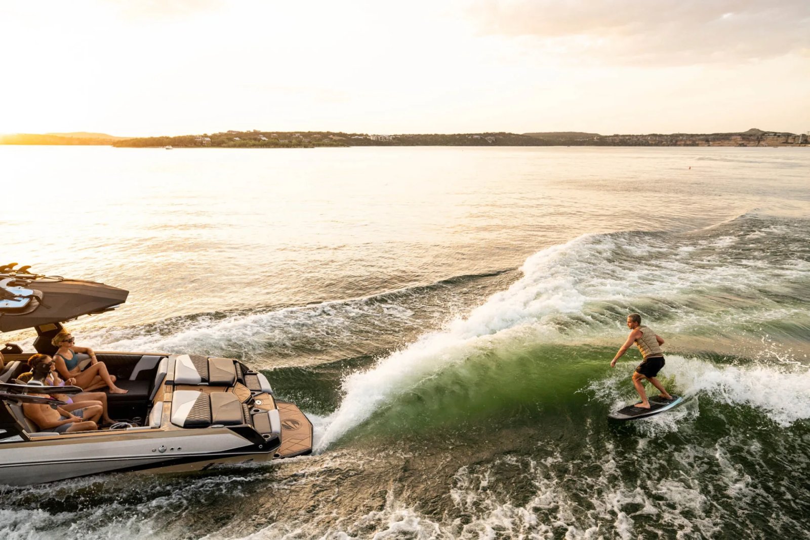 TAPS 3T TAPS 3T and the natural performance of the CONVEX V HULL forms the longest, most perfect and powerful surf wave on either side of the boat.